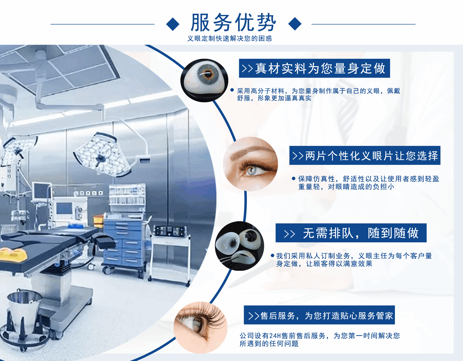 正目醫(yī)療科技有限公司致力于為用戶提供假眼,在哪里可以定制義眼,義眼哪家好,假眼價(jià)格,義眼價(jià)格,義眼費(fèi)用,義眼公司,是集義眼定制、保養(yǎng)、咨詢?yōu)橐惑w的綜合性義眼定制企業(yè)?! —?dú)創(chuàng)的義眼工藝結(jié)構(gòu),根據(jù)仿生物學(xué)原理,采用進(jìn)口醫(yī)用植入材料:高分子材料、無毒素、性能穩(wěn)定、堅(jiān)固耐用)、聚甲基丙乙烯阝-羥乙酯HEMA材料(軟性親水性材料),結(jié)合獨(dú)特的義眼個性化佩戴技術(shù),按佩戴者健眼的形態(tài)、角膜、虹膜、及瞳孔的大小、色澤、血管紋理和脂肪分布,設(shè)計(jì)制作。擁有超薄、質(zhì)輕、光滑、親水透氧、佩戴舒適和高逼真的特點(diǎn)。為保證佩戴效...